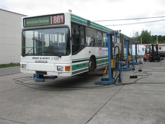 Am Vormittag und späten Abend des 26.06.2012 wurden die ausgesonderten Eberswalder Gelenkobusse Nr. 017 und 029 vom