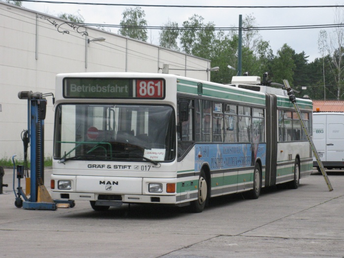 Der erste LKW-Tieflader mit seiner Ladung, dem ausgesonderten Gelenkobus 017, verlies gegen 10:30 Uhr den Betriebshof Nordend .