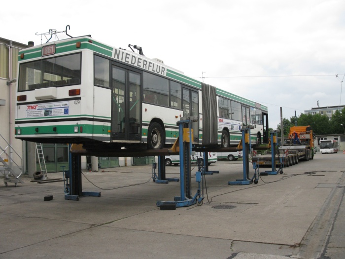 Die Verladung wurde daher erst gegen 21:30 Uhr abgeschlossen. Nach dem Einlegen einer gesetzlichen Ruhezeit durch den LKW-Fahrer erfolgte die Abfahrt des LKW-Tiefladers mit dem ausgesonderten Gelenkobus 029 am 27.06.2012 gegen 09:00 Uhr. Die Transporte erfolgen durch Deutschland über Österreich nach Ungarn. Mit einem Eintreffen der Fahrzeuge war am Freitag gerechnet worden.