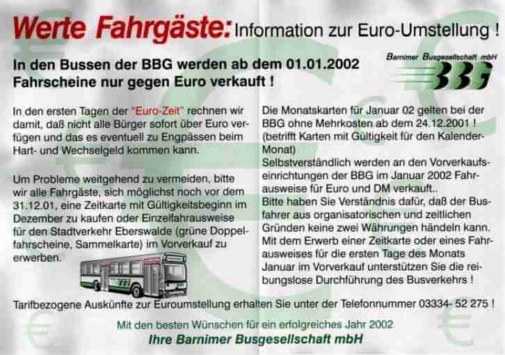 Information der BBG mbH Eberswalde zur EURO-Umstellung